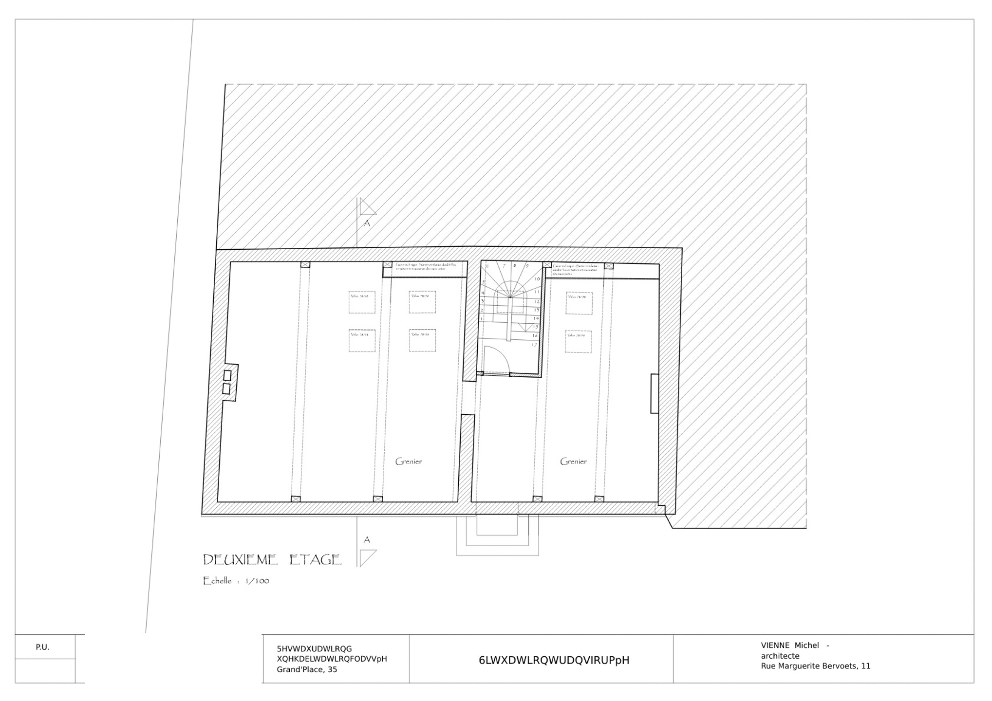 2ème étage : Deux greniers aménageables de +/- 42 et 32 m².